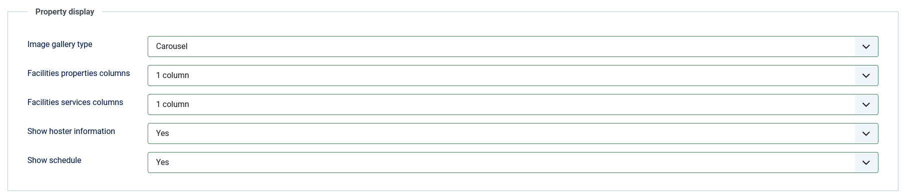 - Facilities: Select the facilities you want to include for this property.