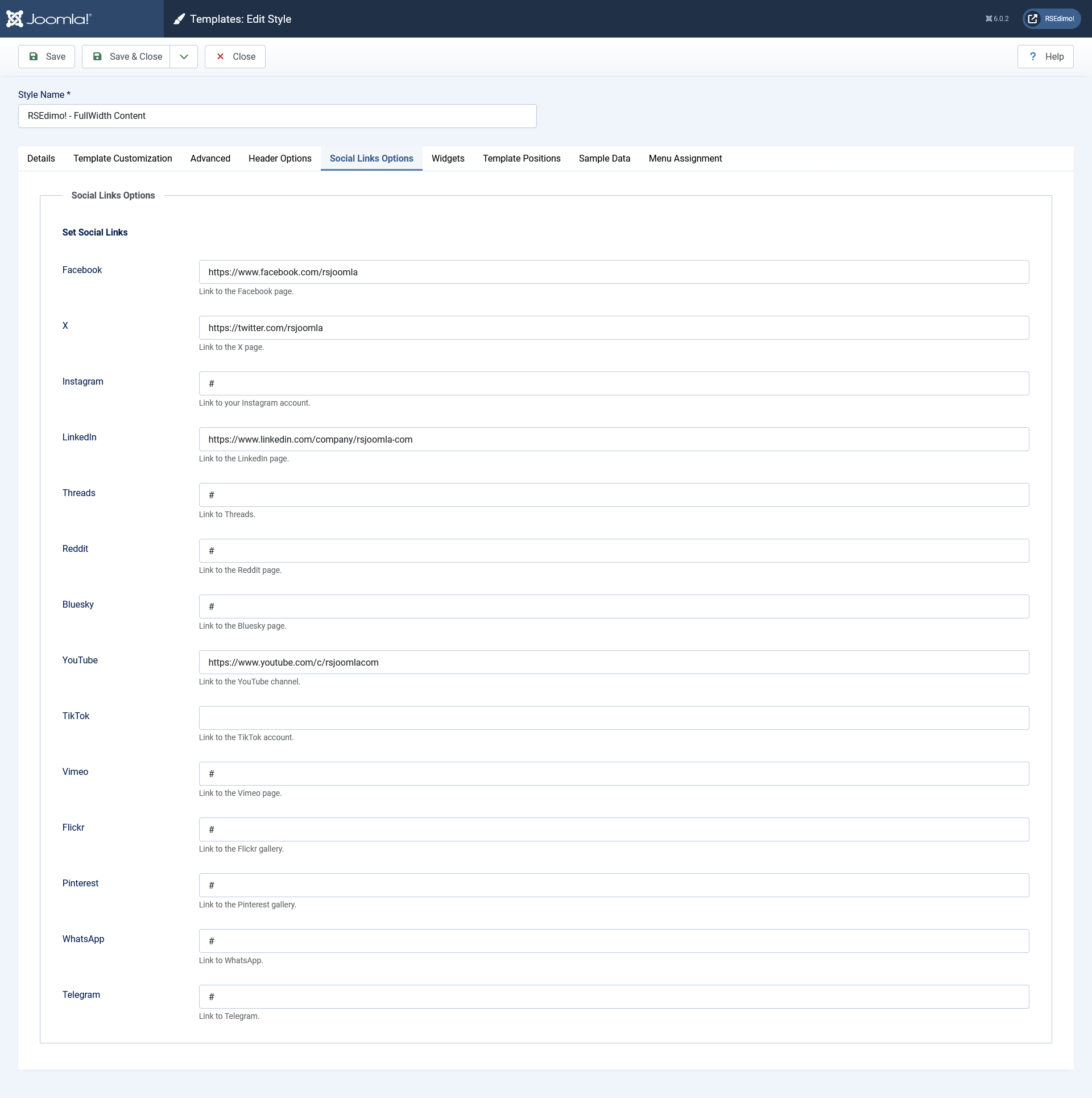 - Text: Set the title for the Social Links position.