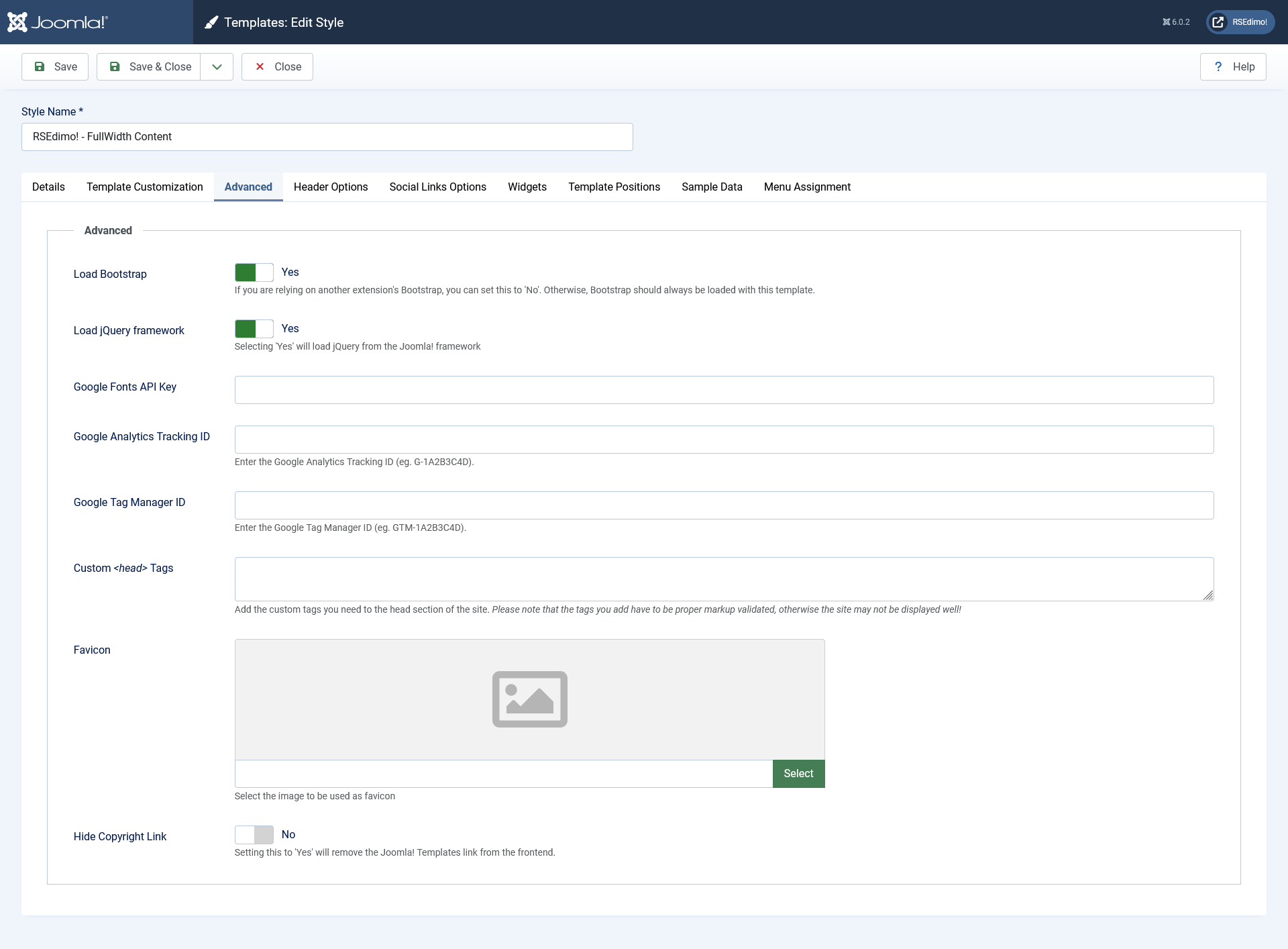 - Load Bootstrap: If you are relying on another extension's Bootstrap, you can set this to No. Otherwise, Bootstrap should always be loaded with this template.