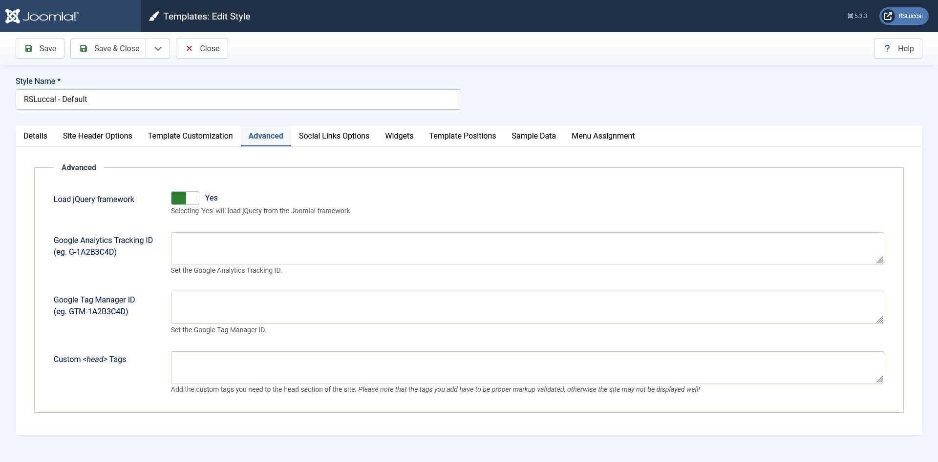 - Load jQuery framework: Selecting Yes will load jQuery from the Joomla! framework