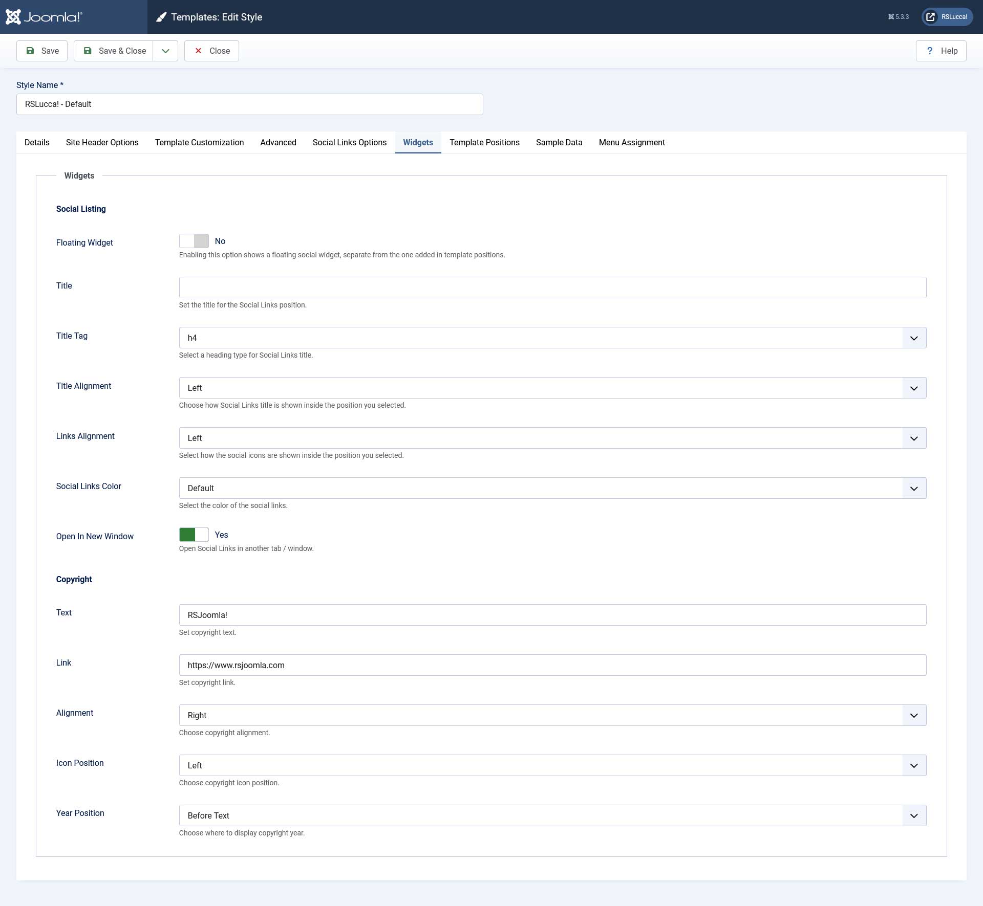 - Floating Widget: Enabling this option shows a floating social widget, separate from the one added in template positions.