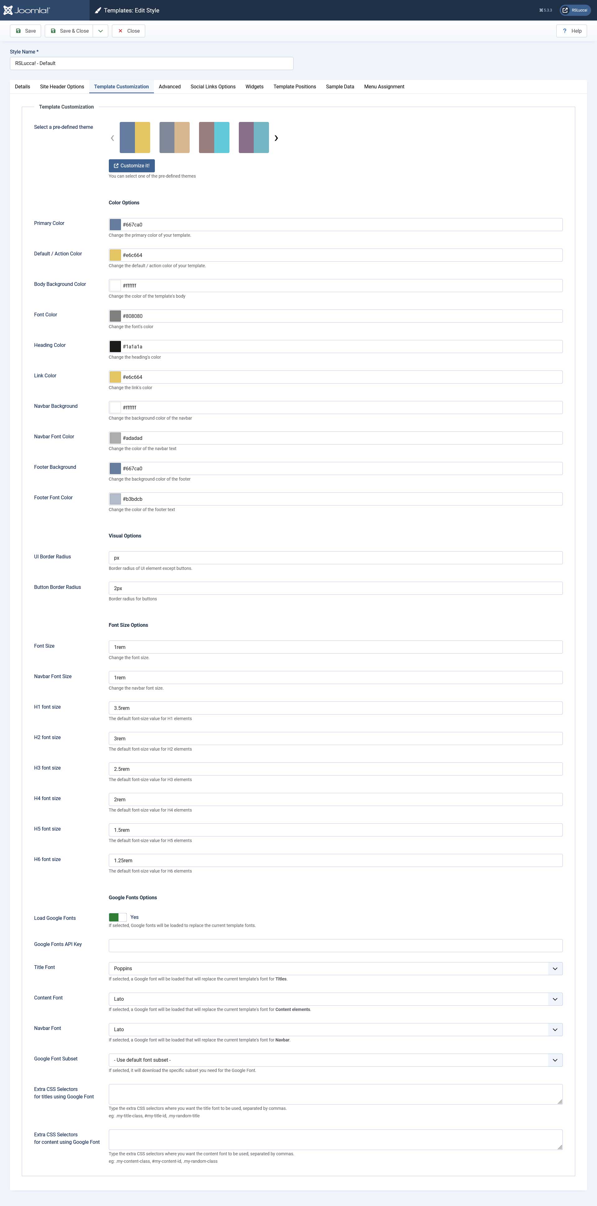 - Load Google Fonts: If enabled, Google fonts will be loaded to replace the current template fonts.