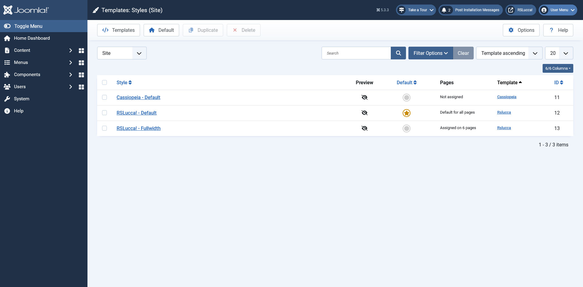 In order to use this template by default for your front-end, click on the star icon under the Default column.
